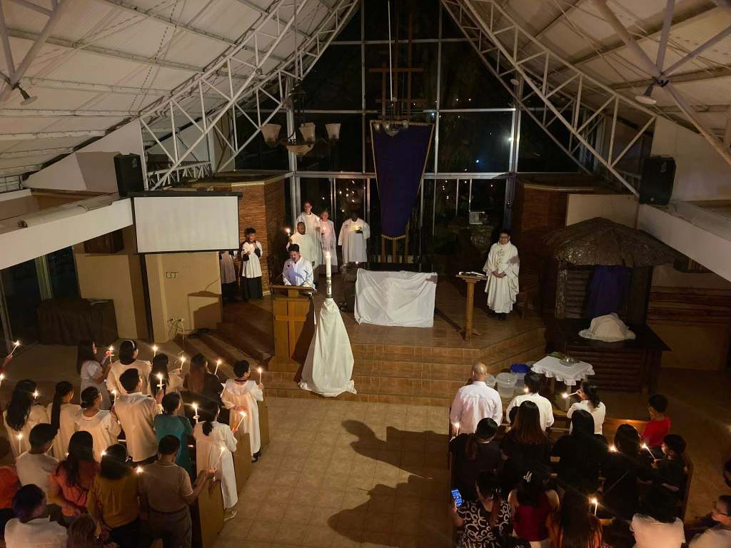 Holy Saturday (April 19) was a time of sacred waiting. In the evening, the community gathered for the Easter Vigil, beginning with the lighting of a new fire—a symbol of Christ’s light breaking into the darkness. The youth also prepared the venue for the Sugat, a local Easter tradition.